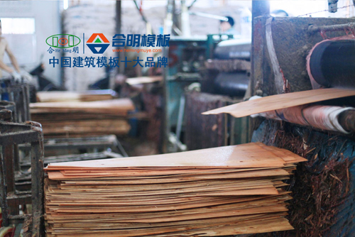 單板原材料:合明桉木建筑模板無論是面板還是芯板,全部采用一級單板制作而成,合明擁有獨立的單板旋切廠,精品原木在這里經旋切加工成單板,一級單板全部自供使用,二級三級單板售賣給其他模板廠家。正因為全部采用一級品,所制作出的建筑模板板面平整,周轉次數穩定。